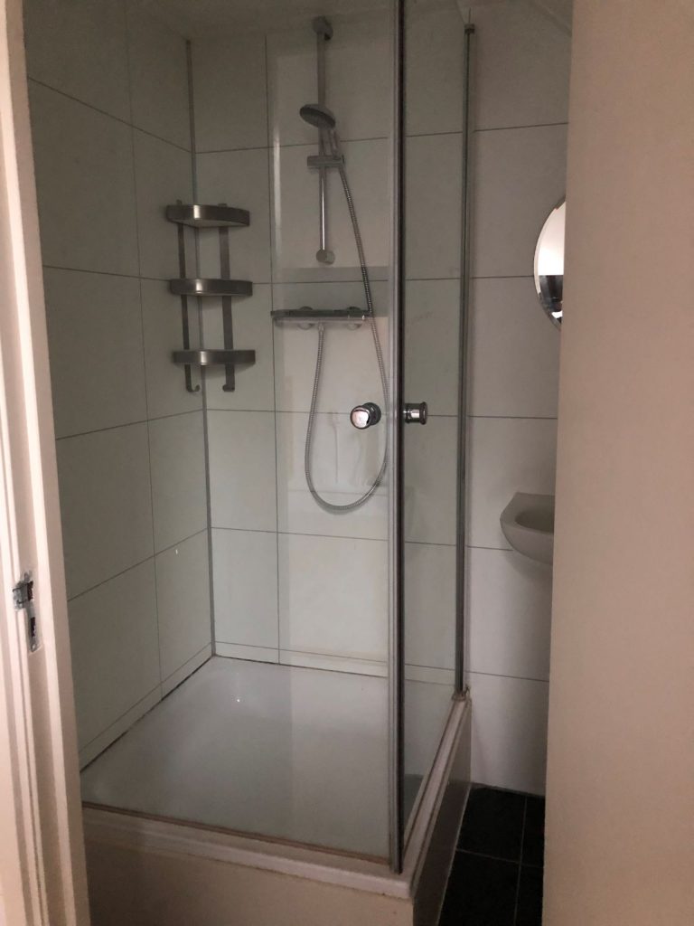 Op de bovenste woonlaag bevindt zich de douche. Hierboven uitstekende thuiswerkplek mogelijkheden of evt. slaapgedeelte.